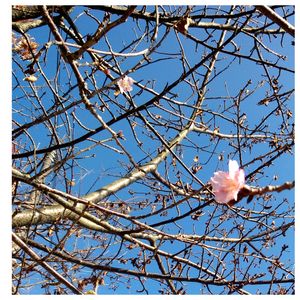 『桜🌸』 23/1/11 数種類の桜が、日当たりの良い南斜面に植えられています🌸 その中で、毎年一番に開く小さなお花😍 6輪ほど咲いていましたが名前は不明❗ 桜が咲き出すと嬉しくなりますね🤗