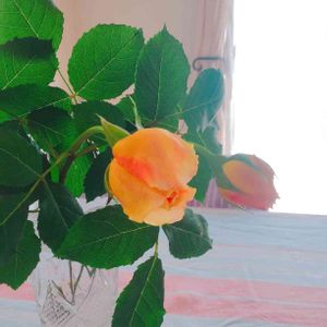 ‘ホワイトクリスマス’と‘ゴールデンセレブレーション’ 朝は蕾だったけど帰ってきたら全開。 雨が降りそうなのでカット✂ わりと大きめ‘ゴールデンセレブレーション’が霞むくらい大輪です。