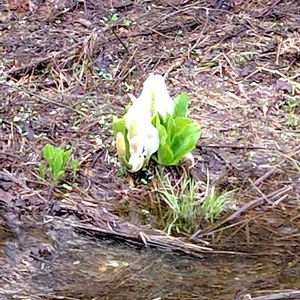 🤍💚🤍💚 おはようございます😊 今日のお花 水芭蕉💚💚 以前お出かけ先で撮影したものです 車の中から偶然白く光るものが見えて、沼地だったため遠くから撮影しました✨ 沼の中にポツンと咲いていて わ〜〜と感激でした🥰