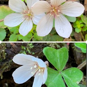 入道ヶ岳シリーズその7😆 ミヤマカタバミ🎵 花はカタバミよりずいぶん大きく、白にピンクのスジがカワイイ👍 葉っぱは三角のが3つ、私好みで特徴的です⤴️ コミヤマカタバミには去年会えてましたが、ミヤマカタバミは初対面😆😆 この花に会えたことで、入道ヶ岳で会いたい花はコンプリート⤴️ 昼近くでしたが、登頂はせず、下山して他の山へ向かいます💨💨 あくまで登頂目的の山登りではなく、会いたい花に会うための渋々登山なので、私の心は晴れやかです(笑)