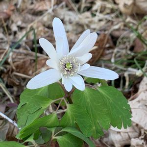 雪解けを待って行った山で待っててくれた姫😄 アズマイチゲですね🎵 ちょっと眠そうだけど、垂れた葉っぱもカワイイ👍👍👍 パソコンからのテスト投稿です……スマセン💦💦