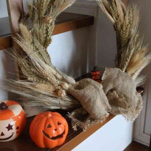 おはようございます⛅ 収穫してずっとそのままだった大麦、小麦でリース制作💞 大きくなりすぎたので、習い事の教室で飾ってもらいます🎃