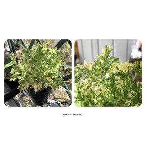 斑入りのよもぎ。 珍しいのかそうでもないのかわかりませんが、とても綺麗だったのでお連れ帰りました。 少し葉をとって潰してみると好きな香りが🎶 食用の野菜苗と一緒に並んであったから食べられるんですよね? 挿して増やして新しい柔らかい芽から食べちゃいたいなぁ🤤 カラーリーフとしても使えそうだけど、よもぎだから大変なことになりそう…