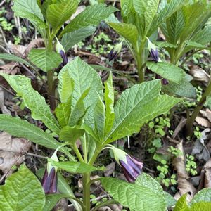 おはようございます☀ お山で咲いていたお花💚 林間の斜面に群生している ハシリドコロ🌿🌿 茎や葉は無毛で柔らかく花は、 花柄の先端に付き紫黄色、広鐘状。 有毒でアルカロイドを含む劇薬に指定されている。 誤って食べると、嘔吐、痙攣、昏睡状態、錯乱して走り回ると言われ この名の由来。 新芽は、美味しそうです😳 花が咲いてない株が多かったです。