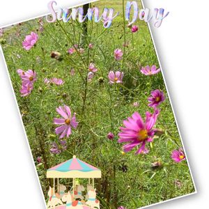 今日のお花 コスモス 道路脇の小さなお花畑 コスモスが秋風に揺れていました❣️ 随分前にこんな秋晴れの日に遊園地に行ったことをふと思い出す景色でした💕