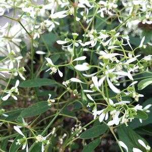 毎年育てている大好きなお花💕 🌼 ユーフォルビア・ダイアモンドフロスト 🌼˙˳⋆ 花期:4~11月 背丈:30cm 花びらに見える白く長い苞が ひらひら涼しげで綺麗です✨ ふんわり大きく育って、とても丈夫😉 半年以上ずーっと咲いてくれます💖 うちでは明るい日陰でも育ちます🌿 そしてなんと!水挿しで発根させて 冬越しもできちゃいました(*๓´˘`๓) 昨年春~秋は地植え→秋に水挿し→ 今年春にまた地植え→まだ咲いています♬ そろそろ霜でやられるので、また水挿ししました💐 名前がユーフォルビア...だから よく考えたらトウダイグサ科!🌱 アップで見たら、トウダイグサ科の特徴の 膨らんだ子房が飛び出しているのがちゃんと見える🔍 タコさんみたい🐙 新たな発見🤗🎶