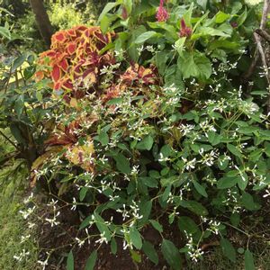 夏場ずっと咲いていて 今はなんだか涼しそうです🌿✨ 鉢植えしていますが常緑低木なんですね😳