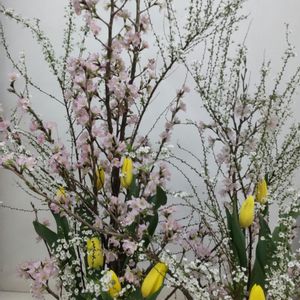 💐駅構内のお花シリーズ76 2023.1.25撮影 東陽町駅構内 姫水木、アルストロメリア、雪柳、テッポウユリ、カーネーション、ユーカリ、スイートピー 🏷素敵な水曜日 🏷水曜日は水色 🏷幸せの黄色いお花 に参加させてください😊