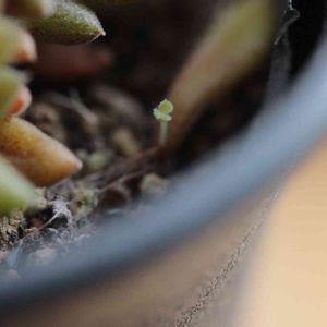 ちっちゃ〜い♡ 花が咲いて親はヨレヨレ、もうダメなんだろうなと思ってたら 落ちた葉っぱから赤ちゃんが🚼