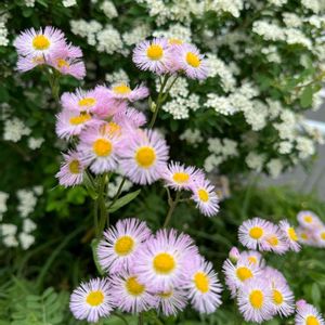 ハルジオン(春紫苑) [今日のお花]🩷🤍🩷🤍🤍 散歩道には沢山のハルジオンが群生しています。 野草ですが淡いピンク色と白い花が可憐に咲いているのは里山の原風景のようです。 2024.4.26里山