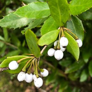 今日は朝から雨降り☔️ 梅雨ですからね〜。 名古屋大学野外観察園で出会った珍しい植物。 トゲトゲの鋸歯とツヤのない白い実が目を引きました👀 「天竺目木 ベルベリス・プルイノーサ」 中国原産のメギ科の植物です。 検索してみたらGSでは1件投稿されてました! 白い実は熟すと青くなるそうです🔵 やはりツヤはなく、すりガラスのような趣だとか☺️ 冬場の餌が乏しい時期の鳥さんの糧になるそうです🐦💙