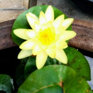 知人宅を訪ね、庭に置かれた火鉢に、黄色い睡蓮が、咲いていました。