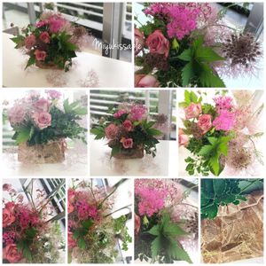 お久しぶりですm(_ _)m ピンクのスモークツリーさん🎶 京鹿の子、アストランティア、 薔薇ハロウィン、 八重咲きブバリアのライラック、 ブラックレースフラワー、 ポリシャスさんたち🎶 オイルペーパーをスタンプして 赤い麻紐で ペーパーバッグを作って アレンジしてみました💓 野生の草っぽいお花や 草たちを見ると もうすぐ夏だなぁって 感じます🎶 梅雨入りですね☔️ グリーンたちに癒されましょうね (=゚ω゚)人(゚ω゚=)