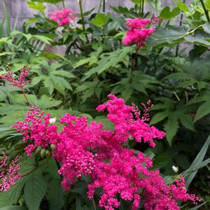 ほわほわ ふわふわ 可愛い姿 ぷちぷち ちっちゃい蕾も💕 京鹿の子 名前も 可愛い~🎵 日蔭もOKと言う事で 購入 さてさて 育て方は…?ググる ググる🎵 あら? あらら👀?ら…? 京鹿の子?シモツケ?シモツケソウ? 全部そっくりやん(。_。)? 花だけみたら 私には 見分けつかない(笑) 調べてみました🎵 シモツケ バラ科シモツケ属の低木 葉は先の尖った卵状 木なのね… シモツケソウ バラ科シモツケソウ属の多年草 葉は掌状で5~7裂 側小葉(掌状の葉の下に対に出る葉)がある 茎に目立たない程のトゲがある 京鹿の子 バラ科シモツケソウ属 シモツケソウと同じく掌状の葉 5~7裂 側小葉は 目立たない程小さいか 無い トゲはない シモツケソウと越路シモツケソウ(越路~?( ☆∀☆) マタチガウノ出た)の交配種とも言われる園芸種 シモツケソウより 大型に育つ で…越路シモツケソウ…イヤニナッテキタ(笑) 托葉(葉の付け根にある付属体)が 大きく茎を抱くのが特徴 側小葉あり トゲに関してはどこにも記載なし うちの子は… 葉は掌状 側小葉は地面近くのはあるけど 上のほうの葉のはかなりちっちゃくポチっとある トゲは 無いみたい 托葉は はっきりあります 結局…うちの子は 越路シモツケソウ? よくわかんない デシタ (´▽`;)ゞ シモツケソウと京鹿の子の判別は 諸説あり難しいらしいと云う事が わかりました_(._.)_