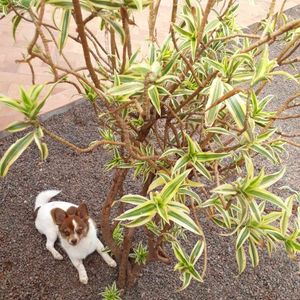ロメオ🐶 ドラセナ🌱 どちらも知人からの頂きものです。シアワセ!😁