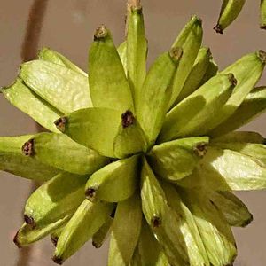 この実、なんの実、気になる実~♪ バナナの子どもの集合体にも見える。トゲトゲしてるわけではないけど、表現としてはトゲトゲした実ということになるのかな? 触った手はかぶれたりしてないから、ハゼのように触るとかぶれる系の植物ではないってことですよね。 道に落ちてたということは、風に飛ばされてきた?鳥が運んだ? どこかから転がってきた? 誰かが持ってきたけど、落としたか、捨てた? 毒とかあったら、ヤバいなぁ😥 [追記] カンレンボクという名前だとわかりました。毒性の強い植物なのだそうです。ヤバい😱 たくさんの実をつけることから、子孫繁栄の木とか喜樹とかいわれてるそうです。 でも、そのたくさんの実が毒性強いのか😱