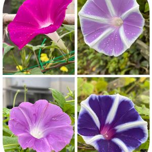 アサガオ(朝顔) おはようございます☁️ 今朝は蒸し暑い朝です😂 雨上がりなのでしょうがないですが、今朝の色んな朝顔まとめてみました🍀 💦が残る花びら綺麗です💖