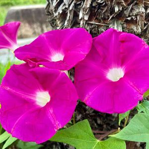 アサガオ(朝顔) 蔓が巻き付いているのはソテツです🍀 この朝顔を育てている人が、昨日このソテツの蔓に花が咲かないかなと言っていましたが、今朝見事に咲いたので、きっと喜んでいると思います😄