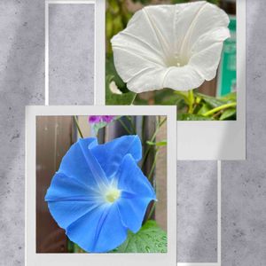 毎年こぼれ種から咲いている青いアサガオの中に、白いアサガオ出現🤍???🤍 謎だけど嬉しい✨✨🎶