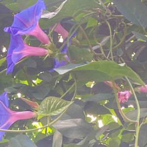 もう二十年以上経つ気がします💙 毎年こぼれ種で、何にでも絡み付いて育つ逞しい朝顔です🤗 今年は一株にだけ、切落しの枝で簡単なオベリスクを作って絡ませてみました🎶 雑草から園芸品に昇格したよう(笑)✨✨
