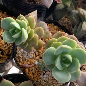 【エケベリア属 ニクサナ】 Echeveria 'Nicksana' Echeveria 'Nicsana' 別名 ニクサーナ ニクサーサ 中国名 妮可莎娜 韓国名 니크사나 【エケベリア属 みどり牡丹】 Echeveria 'Midoribotan' 和名 緑牡丹 カクト・ロコさんの ネームタグは【みどり牡丹】🏷️ 羽兼直行氏の著書掲載の 碧牡丹(みどりぼたん) Echeveria 'Midoribotan' とは、また表情が異なります 書籍掲載の碧牡丹の交配式は、 パルメリー×カンテ Echeveria palmeri×Echeveria cante 羽兼氏曰く 「日本に最初に入ってきたパルメリーは、みどり牡丹 E. 'Midoribotan' と名付けられた」 ☝️との事です いとうぐりーんさん、 ハニーミントさん、 大倉園芸さんでは、 みどり牡丹をニクサーナで販売 ニクサナ(ニクサーナ)自体は、 作出者、交配親共に不明 DAISOさんでも扱いのある 超普及種のみどり牡丹ですが、 この様に名前が混乱したりと、 出自不明な謎多肉になります 牡丹の名のつく多肉を、 ご紹介させていただきますね 🌹茜牡丹・アトロプルプレア Echeveria atropurupurea 🌹紅牡丹 Echeveria ? 🌹桜牡丹・ゴースティン・ゴースティ Graptosedum 'Ghosty' 🌹沙羅姫牡丹(さらひめぼたん) Echeveria 'Sarahimebotan' 🌹すみれ牡丹・バイオレット クイーン Echeveria 'Sumirebotan' Echeveria 'Violet Queen' 🌹青典牡丹・碧牡丹 Echeveria 'Seiten-botan' Echeveria 'Midoribotan' 🌹錦牡丹 Echeveria 'Nishiki-botan' 🌹白牡丹・ティテュバンス Graptoveria 'Titubans' 🌹姫牡丹・ハルビンゲリ Echeveria halbingeri 🌹緑牡丹・グロボーサ Echeveria globosa 🌱番外編(センペルビウム属)🌱 🌹紅牡丹・ストレイカ Sempervivum 'Straiker' 調べだしたら、凄い数に💦 取り敢えず挙げてみました (;゚∀゚)=3ハァハァハァハァハァハァ