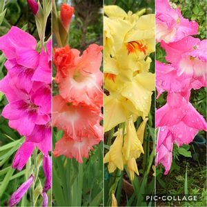 8/8㈯⑤ マンションの庭のグラジオラスたち。 去年は薄紫色があったのに… 今年はありませんでした😅ザンネン