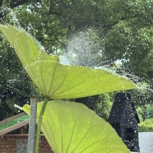 大船フラワーセンターに入ってすぐにあった水蓮シャワー🚿 茎にホースをつなげて葉っぱからシャワーが出ていました😊