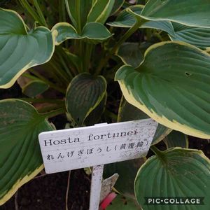 7/17㈮⑤ 《れんげぎぼうし 黄覆輪》 こちらは葉だけでした 黄色い覆輪がアクセント😉✧ ホスタっていろいろあるんですね〜!! 去年は横浜山手西洋館で白い花のホスタを見ました😃🎶