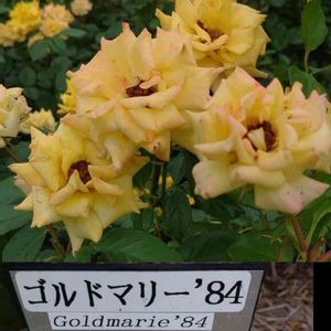 8/17㈪⑤ 🏷月曜日にはバラを 1ヶ月前7/15に、日比谷花壇大船フラワーセンターに咲いていた薔薇 ゴールドマリー'84 です。 花びらの外側が赤味を帯びた濃い黄色の薔薇です。 秋には咲き始めを見たいと思います😄💛💛💛