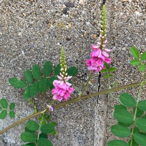伊香保温泉石段街広場でよく見かけた紫色の野の花。 「コマツナギ」というらしい。