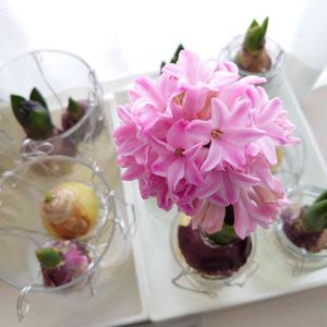 水耕栽培ヒヤシンス。 一番乗りはピンクちゃーん(,,>᎑<,,)💗イイニオイ✿*:・゚