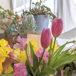 昨日買ったチューリップと スイートピー(*˘︶˘*)💓 花を選ぶときって すごく楽しいヾ(´︶`*)ノ♬ 黄色のスイートピーを水切りしたら、 黄色の液が出てきた。 着色か? 確かにこの濃さは着色っぽい。 ピンクと黄色の組み合わせは春のイメージ💓💛