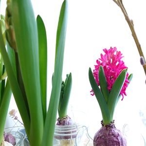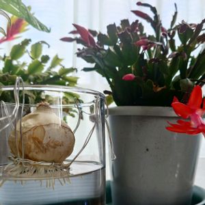 満を持して、咲きました! シャコバサボテン。 ウレシイヽ(;▽;)ノ 最近、枯らしてばっかなので、 ちゃんと咲いてくれると、感激もひとしお💓 横はヒヤシンスの水耕栽培、始めました (❁ᴗ͈ˬᴗ͈)⁾⁾⁾ᵖᵉᵏᵒ