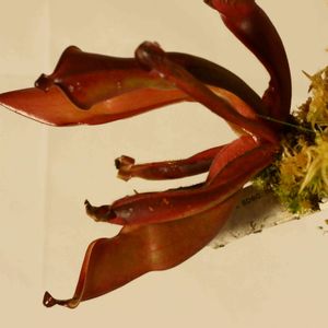 昨日のれおん6000さんのヘリアンフォラ ミノールを見て、ネクタースプーンがウチに似てると思い再登場です。 ヘリアンフォラ ミノール(Heliamphora minor var. pilosa Auyan Tepui)、外側がオレンジ色っぽい赤で内側が緑色、色のコントラストはいい感じなんですが、外側の繊毛が少なく、モケモケ感はあまりありません。