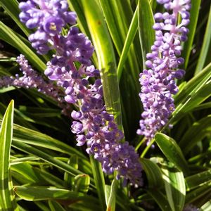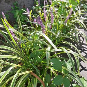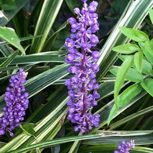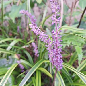 道路沿いの花壇にて、紫色のお花「斑入りヤブラン」をパチリ!📸💜🌿😊😄🤗🌞✌️