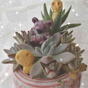☠️コロナ撃退!納涼肝し☠️ 参加させていただきます 多肉のお山に君臨する髑髏クマと、山を守るコダマ😱😱😱😱😱😱😱😱😱😱 ❄雪❄を降らせて涼しさをお届け🍀