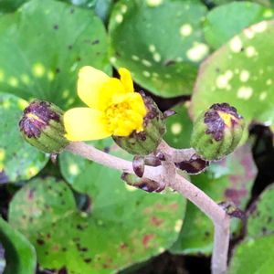 カヌレ型・・それも緑 食欲はわかないかな いえいえ抹茶カヌレ 笑 ジョークはさておき あえて『ツワブキの蕾』 隣にお花咲いてるんだけど そちらは 明日にでも投稿しますね。 おはようございます🌿