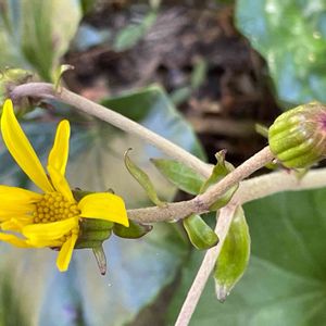 天気予報は、晴れ☀と言ってましたが😅… 空には雲☁が多いような🌥️ 蕾だった我が家の石蕗(ツワブキ)💛大星雲💚 今年初めて開花しました 葉っぱの形はそれぞれでもお花は同じなんですね🤗✨