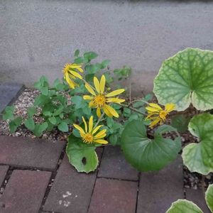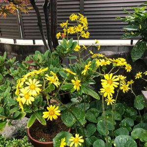 ツワブキも好きな花です。 秋の庭に欠かせない存在です。 こちらは玄関脇のツワブキで 和室前にもあるんですが、今年ははじめてのお花が見られました✨(⑉>ᴗ<ノノ゙✩:+✧︎⋆パチパチ