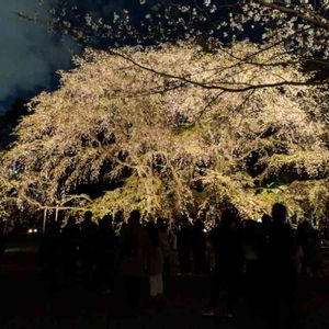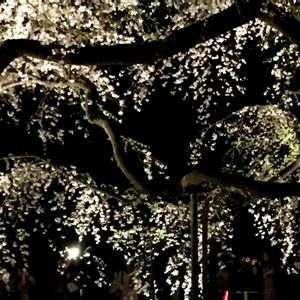 昨夜、六義園にて 桜🌸のシャワー🛀です。見事に枝垂れています😃