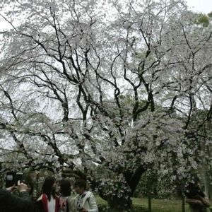 天気が悪くあまり桜が目立たない感じに… でも近くで見ると迫力ある枝垂れ桜!! 六義園にて 2019/3/29