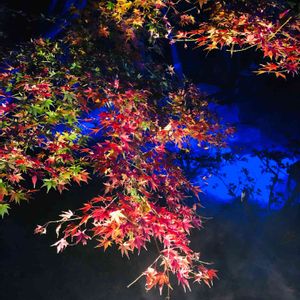 お仕事帰りに六義園のライトアップ✨✨。 私のお目当は、ここ❣️ 「水香江」 紅葉と組み合わせたブルーのライトとスモーク✨✨。 幻想的で素敵💗💗💗。