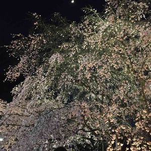 六義園には、2本の枝垂れ桜🌸さんがあり、 一本は、枝ぶりが大きく横広がり。 そして、こっちは、立て長。 今日は、青空お日様いっぱい☀️の下、いっぱいお花見🌸堪能しました (ˊo̶̶̷ᴗo̶̶̷`)。 しっかり「さん福だんご」も食べたし(*゚▽゚*)。 で、 夜のライトアップは、桜が浮かび上がる感じで、とっても幻想的✨✨✨。 って思うと、また見に行きたくなりますね(笑)。 会社帰りにサクッと来ようかなぁ(笑笑)。