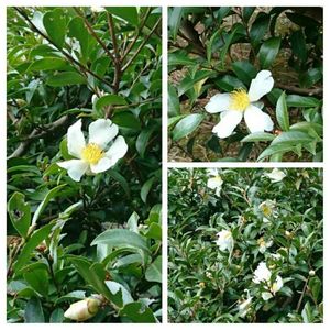 おはようございます😃 六義園 椿かな...? 白く綺麗に咲いてます。