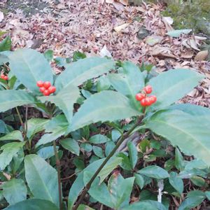 今日の花 【千両】 お正月に出掛けた六義園で📸 葉っぱの上に実がなっているから千両でしょう❓️🤔