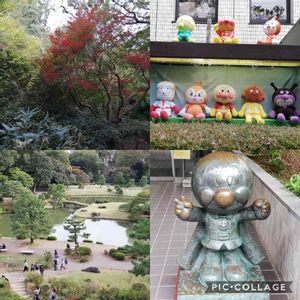 六義園の前、フレーベル館でした。🌸 アンパンマン、ドキンちゃん、バイキンマン勢揃い!🎶