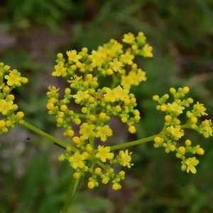 オミナエシ (女郎花) ② 花の色は黄色🟡。小さい花が 集まって咲くので「栗花」とも 呼ばれます。 直径3~4㎜、花冠は 5裂し筒部は 短い。筒部の下の子房には 小苞が接しています。雄蕊は 4本、花柱(雌蕊)は1本です。 花だけで無く、草全体に 悪臭がします。 🏷ちっちゃいものクラブ 🏷日曜ビタミンカラー♪