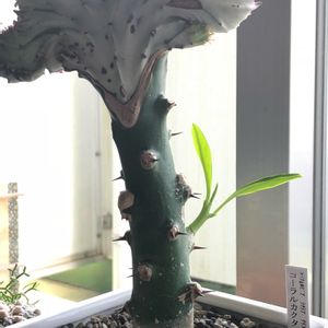 久しぶりの投稿になってしまった(^_^;) コーラルカクタスの土台?のとろこから芽が…👀 このサイズになるまで全く気づかなかった〜www