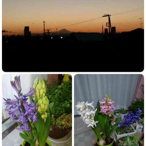上の写真は、夕方にワンちゃんのお散歩帰りに綺麗に見えた富士山&東京スカイツリーを一枚♪ パシャリしました💗 写真で見ると小さいですね…(;^_^Aでも、綺麗だったので♪😸 それと部屋の中でいい匂いがしている、三色のヒヤシンス達は、大分咲いてきました。 左側-1月31日 右側-今日撮りました。 紫色は、ちょっと傾いていますが、その横から蕾が付いてるので、まだまだ楽しめそうです(๑^^๑) 明日は、節分の日ですね。 お家で豆まきをする所が、ウチも含めてですが (;^_^A少ないような気がします。 でも太巻きは、チャッカリ食べる我が家…あはっ♪😜