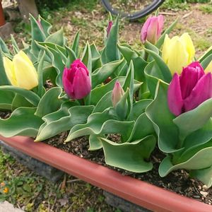 プリンス三兄弟やっと咲き始めました🌷 黄色…サニープリンス 紫…パープルプリンス ピンク…キャンディプリンス ぎゅうぎゅうに詰めてしまってごめんなさい。小さいまま咲いちゃった。 チューリップっていい匂いだな(*''∀''*)/